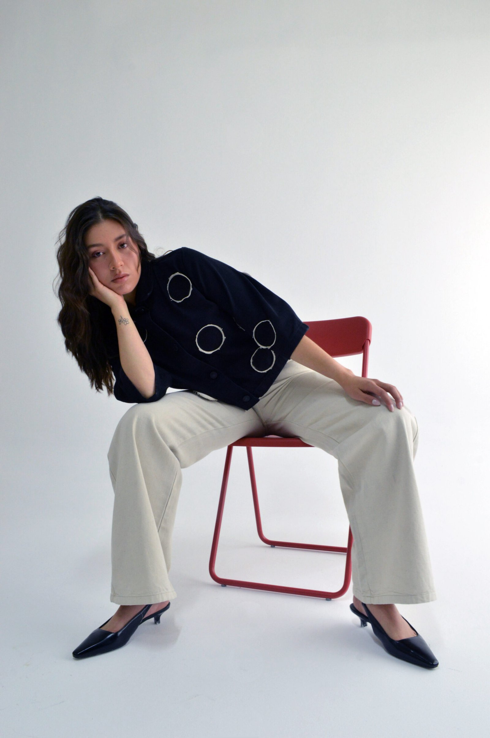 Nuestra chaqueta fiesta tiene ojaletes en toda la prenda, colocados uno a uno manualmente! Es perfecta para cualquier ocasión, cómoda y versátil.