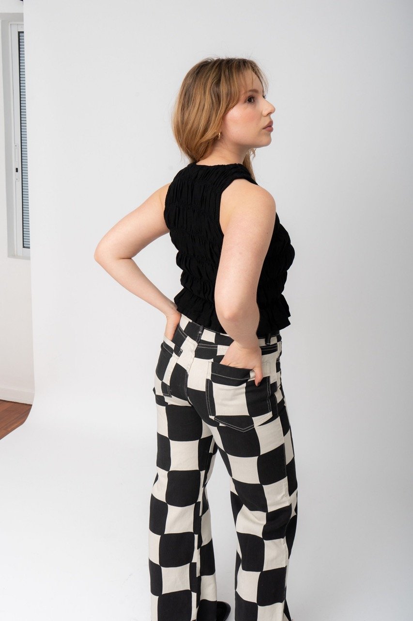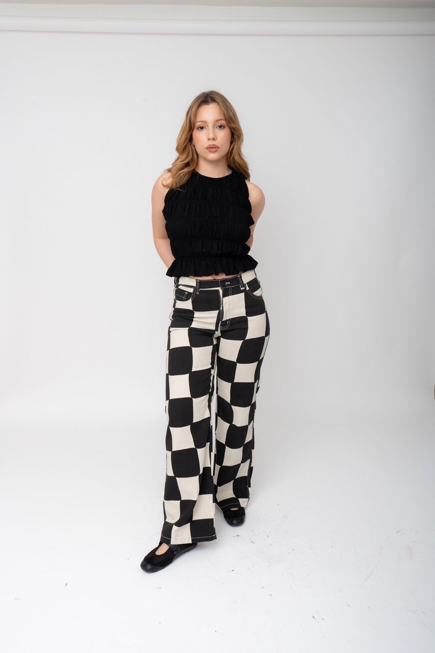 Nuestro jean Galeria esta hecho en algodón rigido, tiene bolsillos delanteros y posteriores, y un fit wide leg.