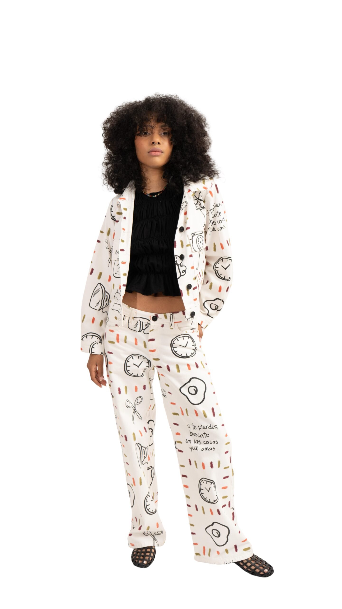 Jean con estrellas en denim bordadas, tiro alto (a la altura del ombligo).