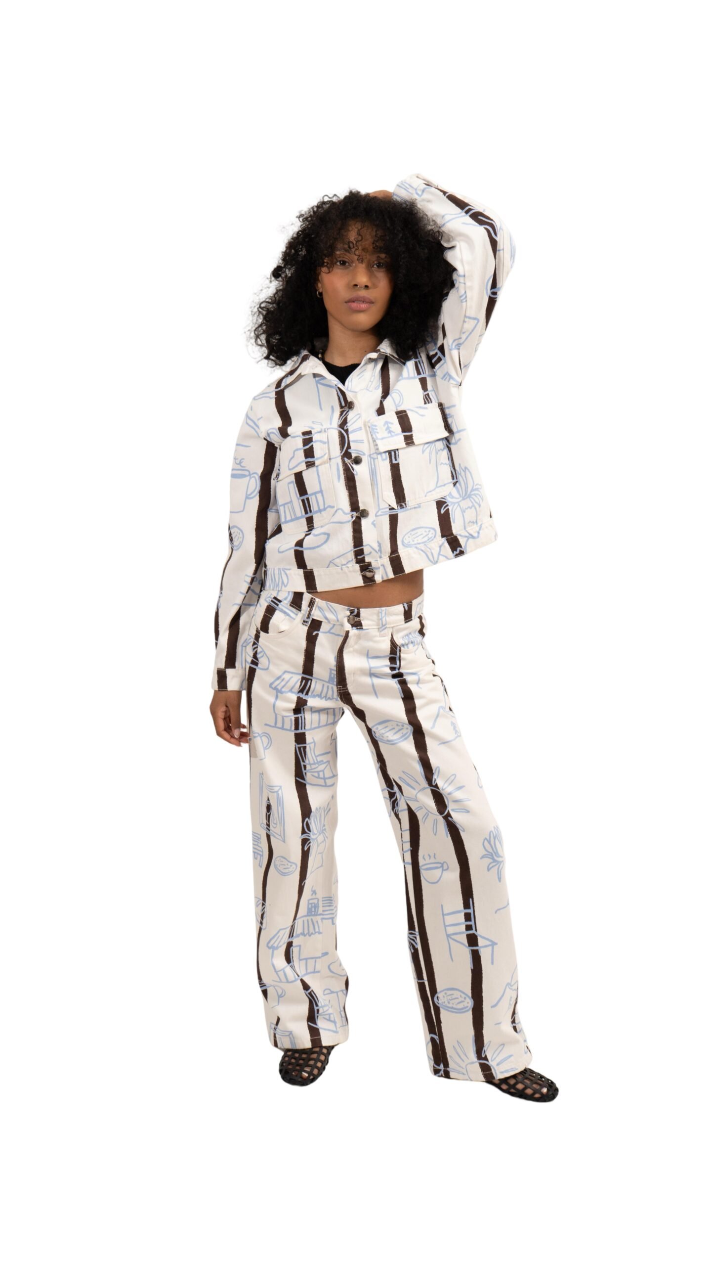 Jean clásico con estampado de dragones, fit straigth, tiro alto (a la altura del ombligo).